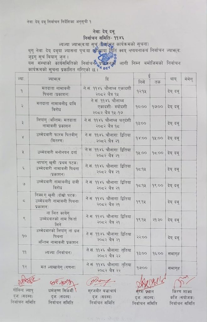 नेवाः देय् दबूया च्याक्वःगु तःमुँज्याया मतदान तालिका व प्रतिनिधिपिनिगु नां धलः प्रकाशन जुल । March 29, 2026March 29, 2026 admin2 Share